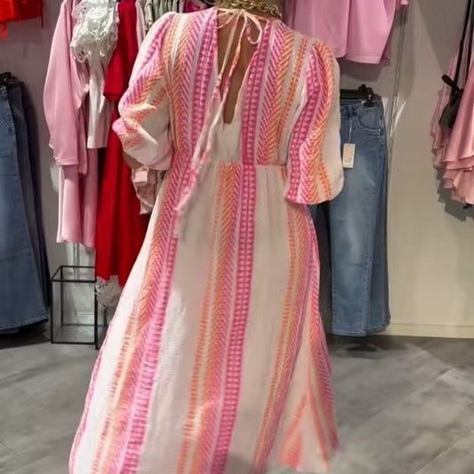 Casual Sleeveless Split Jacquard Geometric Stripes Dress