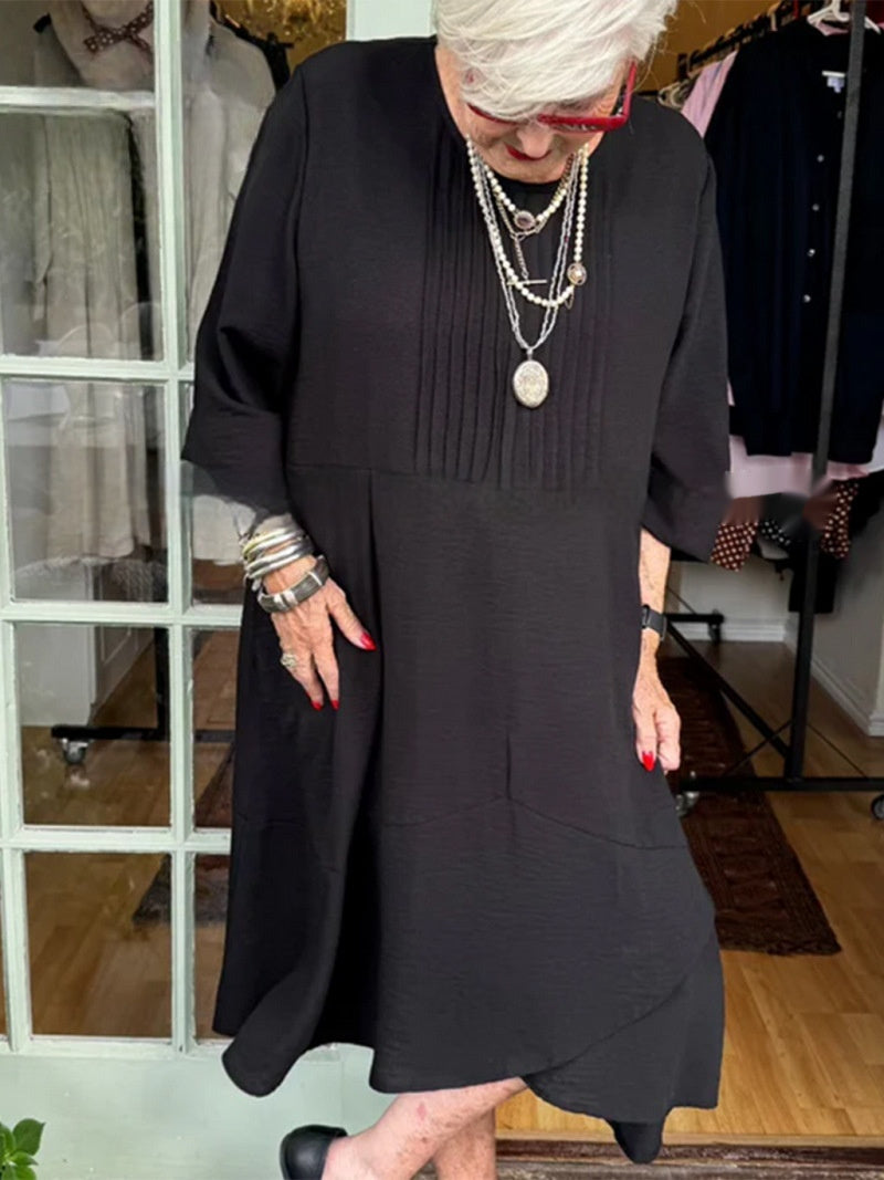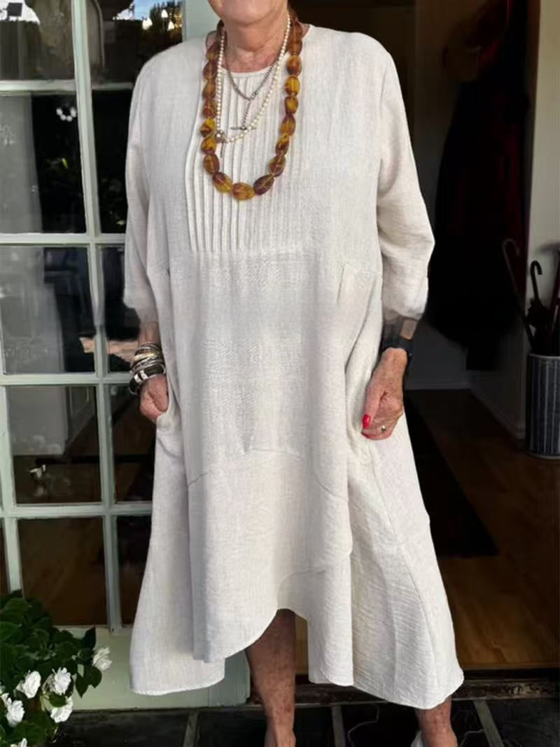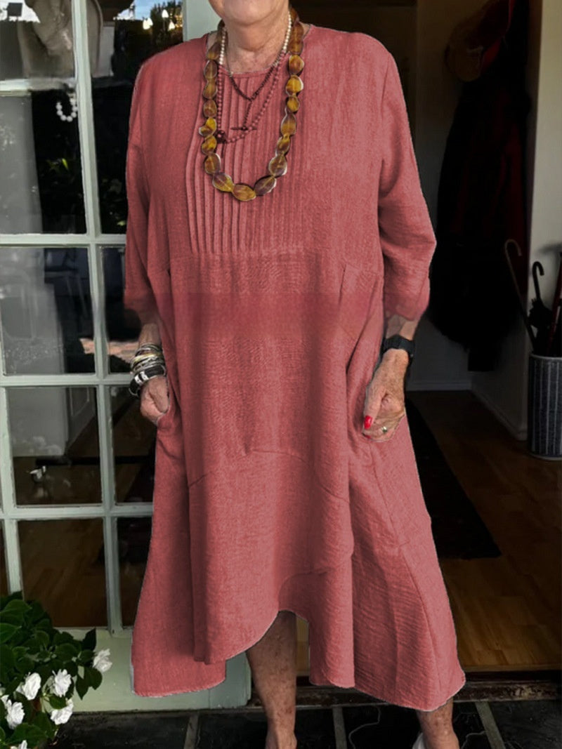 Crafted from a soft breathable fabric, this Katerina™ Pleated Irregular Hem Dress combines relaxed elegance with practical design. Featuring soft pleating, short sleeves, and spacious pockets, it offers breathable comfort and effortless sophistication for everyday wear or casual gatherings.