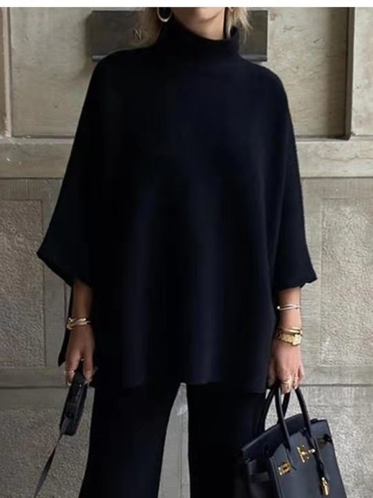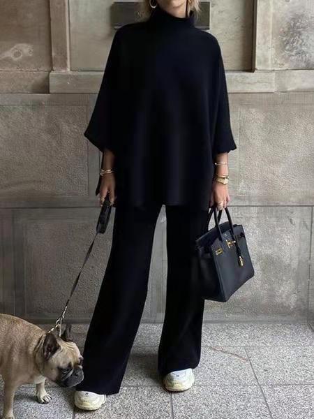 Step into the city with confidence and ease in the Serenique™ City Stroll Set. This two-piece ensemble blends a relaxed turtleneck top with flowing trousers, crafted from soft cotton-blend fabric for a luxurious yet breathable feel. Designed in timeless black, it flatters every silhouette while ensuring all-day comfort.